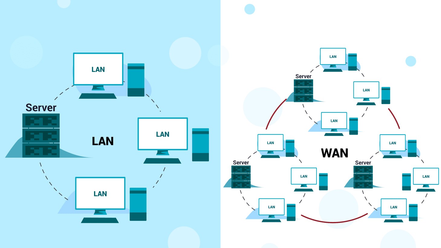 WAN (wide area network) max. 1000-5000 chilometri, comprende interi Stati o continenti;