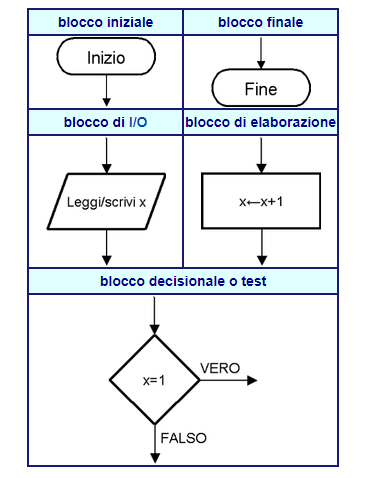 - PARALLELOGRAMMA: Serve a inserire (input) o mostrare (output) informazioni;