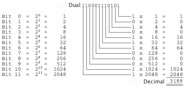Nel sistema binario ci si riferisce a un sistema numerico in base 2. Ossia, composto solo da due cifre (convenzionalmente 0 e 1) che nel linguaggio informatico corrispondono agli stati fisici (acceso e spento) dei transistor che compongono i vari chip. Se le cifre binarie (in inglese binary digit,"bit") diventano 8 (che nel linguaggio informatico corrispondono a 1 byte ), le combinazioni decimali (e quindi i possibili stati del sistema elettronico dei computer) salgono a 256. il codice binario sembra che non sia solamente più complesso da capire, ma anche meno efficiente: mentre quattro cifre binarie rappresentano 16 stati differenti (da 0 a 15), con 4 cifre decimali si possono rappresentare ben 10.000 stati differenti (da 0 a 9.999).
